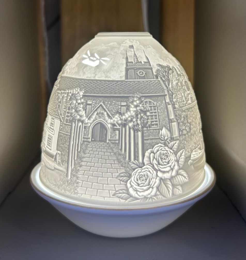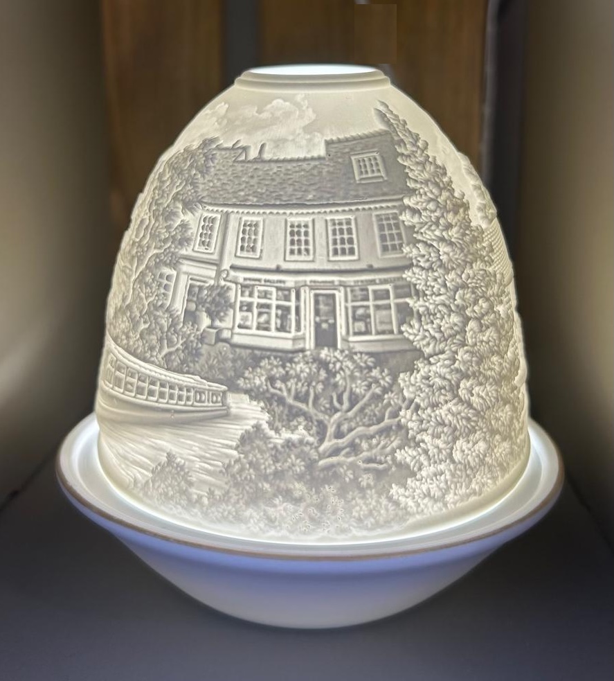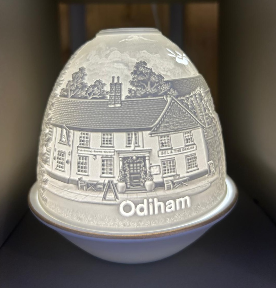 This beautifully designed Odiham lithophane by The Frame Gallery captures the character of Odiham through scenes of the High Street, Canal, Castle, and Church. Supplied with a rechargeable LED light, it allows you to fully appreciate the intricate detail when displayed.